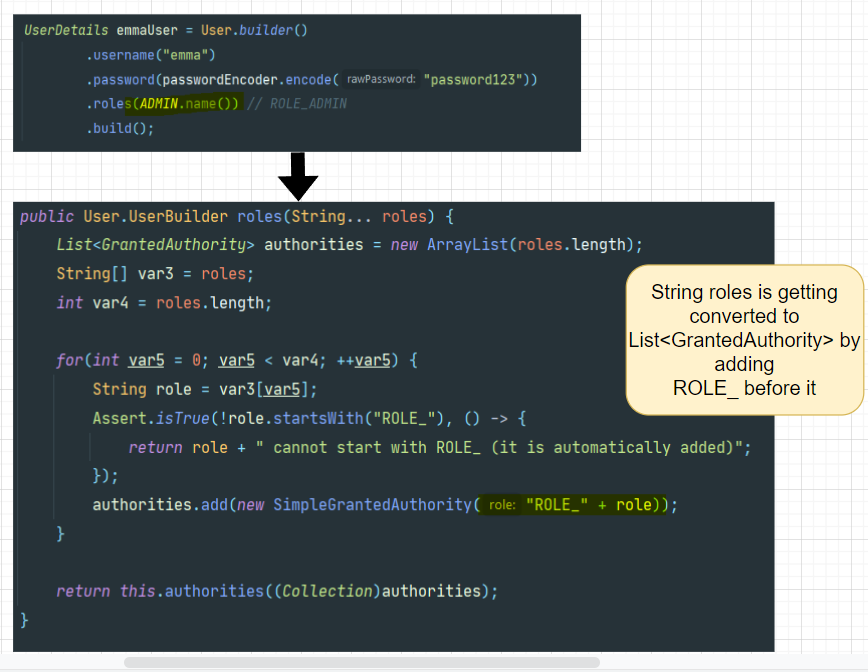 When we add roles while creating a user, internally it is mapped to List<GrantedAuthority>