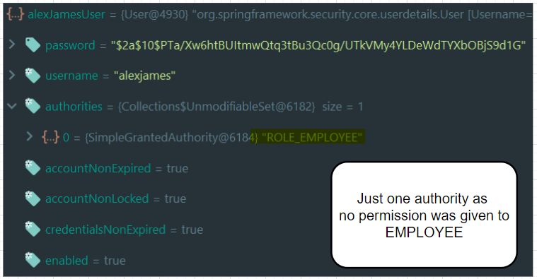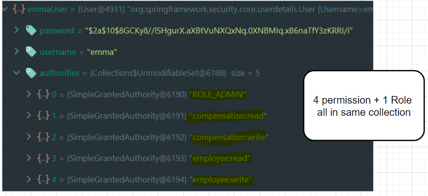 In the above debug as well, we saw ROLE_ADMIN as GrantedAuthority List