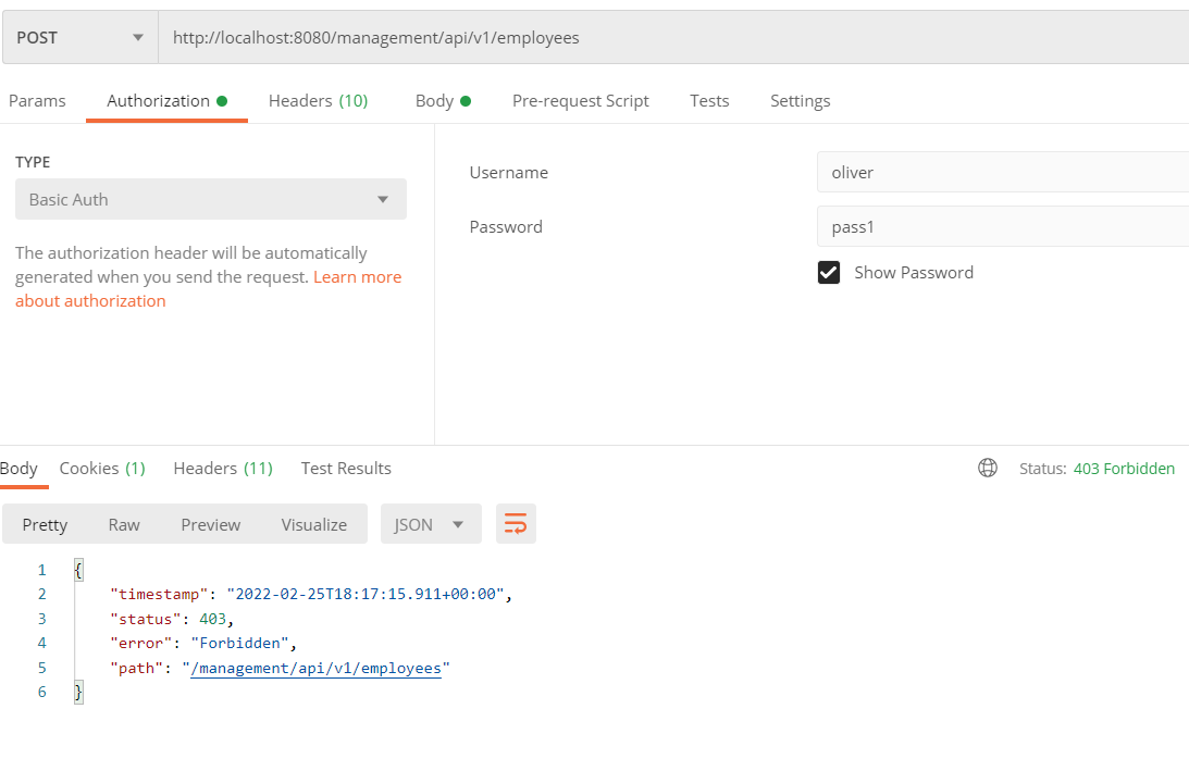 **Accessing POST endpoint by ADMIN_TRAINEE - FAILURE
