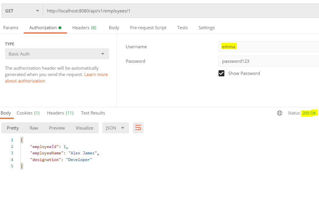 Note- we are still using Basic Auth.