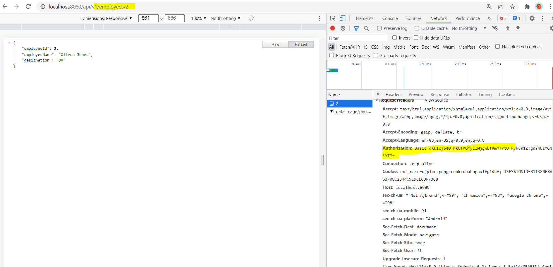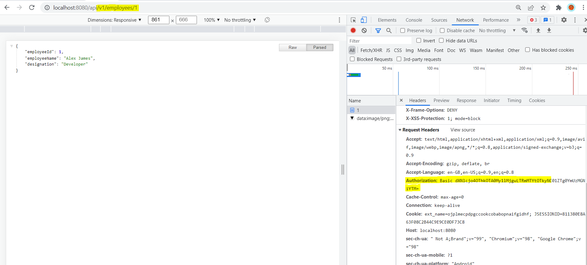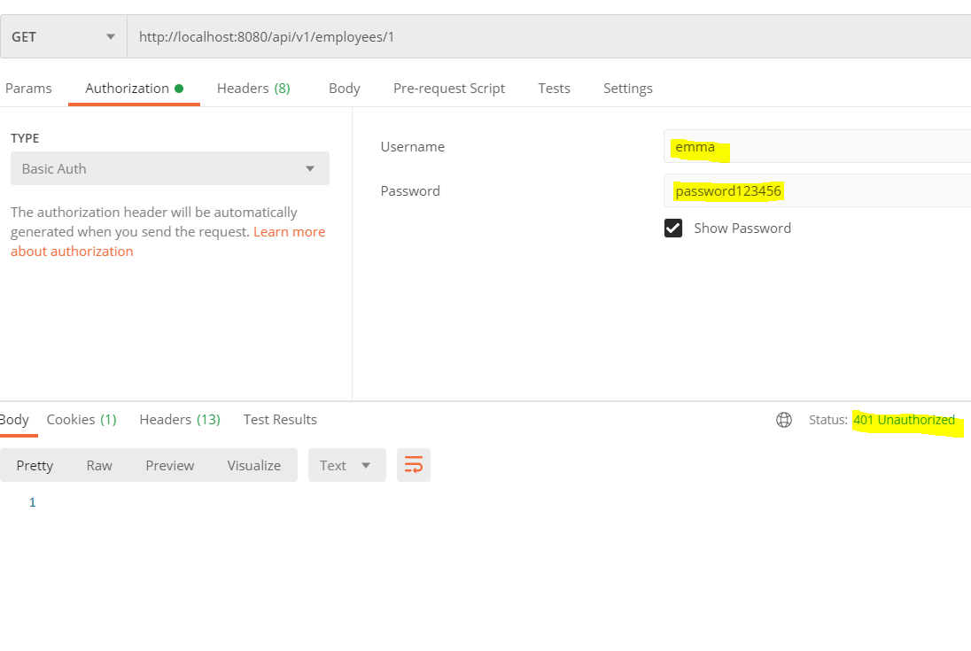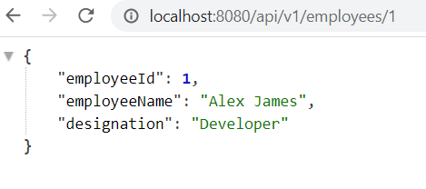 Now let's start the application and access the API (http://localhost:8080/api/v1/employees/1)