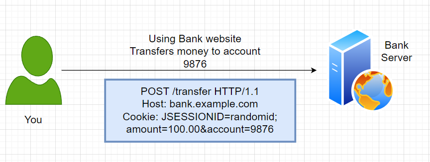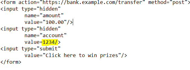 The attacker's page will be a hidden form that will send a request to your bank to transfer money to his account, which is the same POST endpoint we saw earlier.