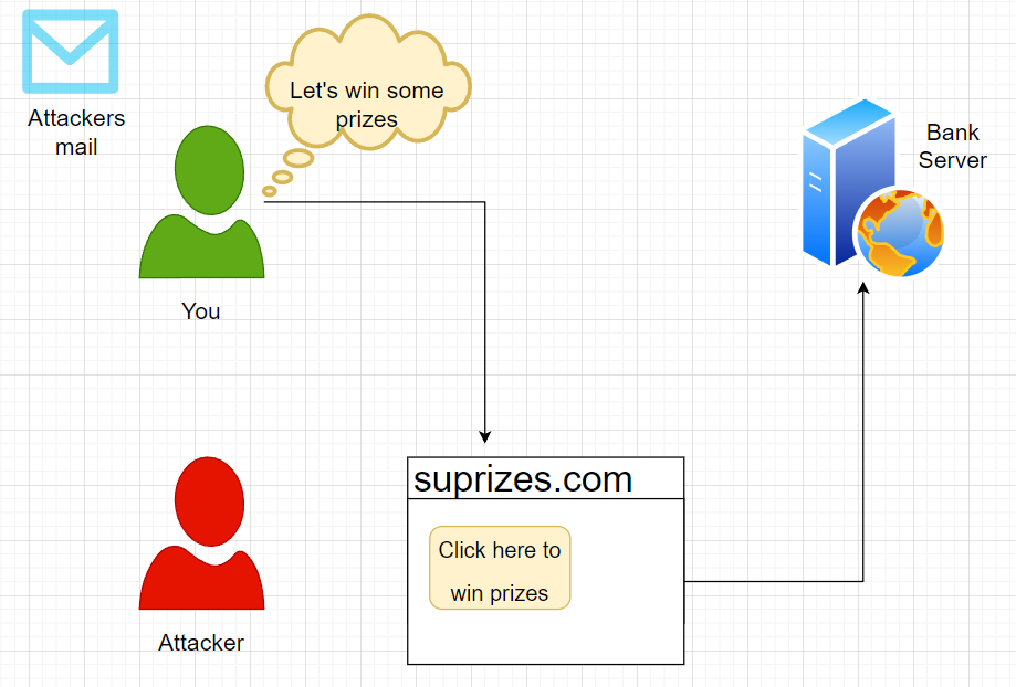 Now, you are still logged in with the bank's application and you got a mail in your inbox which says, "Win Amazing prizes in a second".